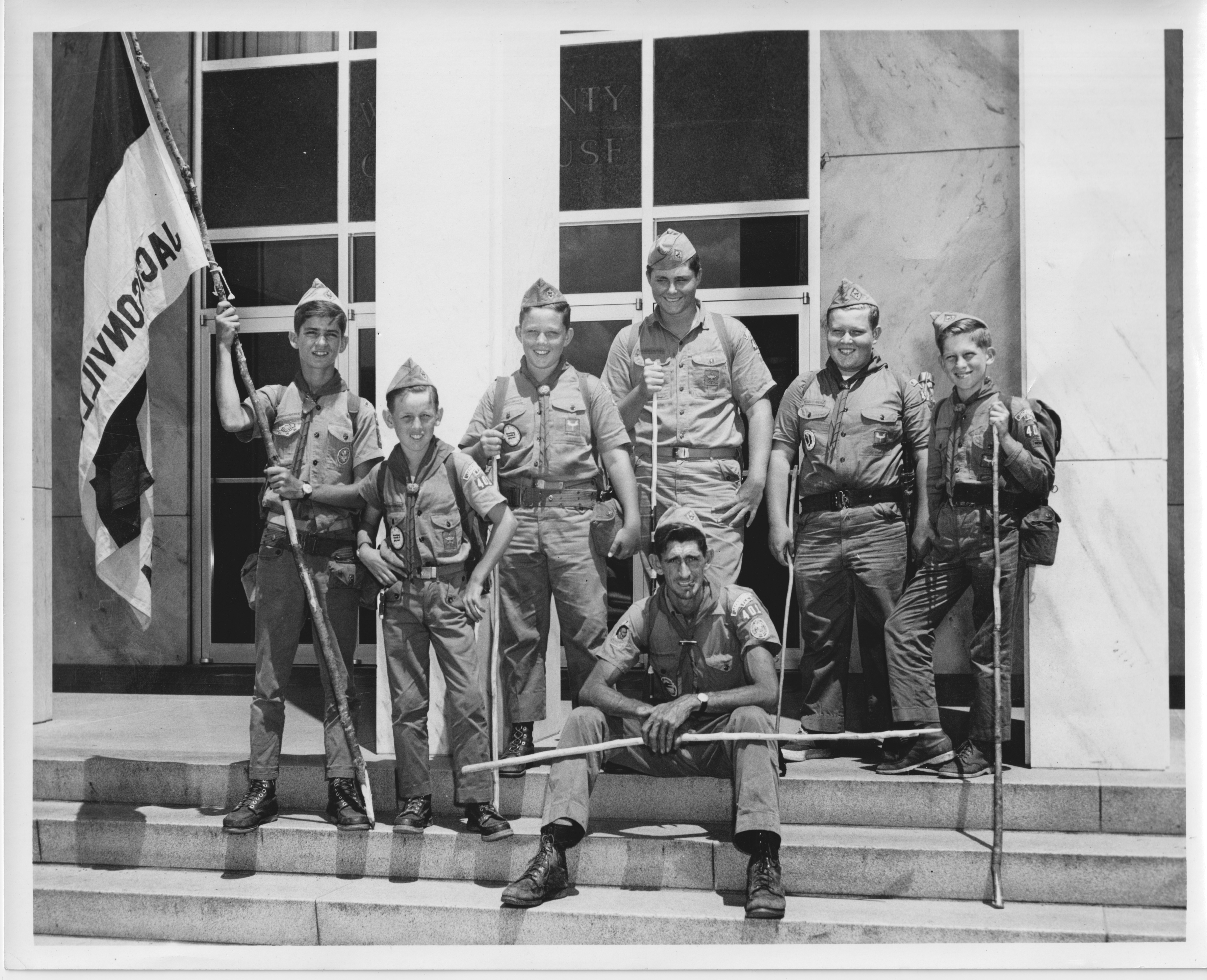 “They walked into Waycross and down the streets, taller and mightier than most groups of young men.” These words were written by Waycross Journal-Herald journalist, Linda Carter, to describe the scene in front of the courthouse on Saturday afternoon June 29, 1968. The headline in the Monday afternoon July 1, 1968, edition read “Scouts End Survival Hike to Ware County, GA; Walk 108 Miles”.